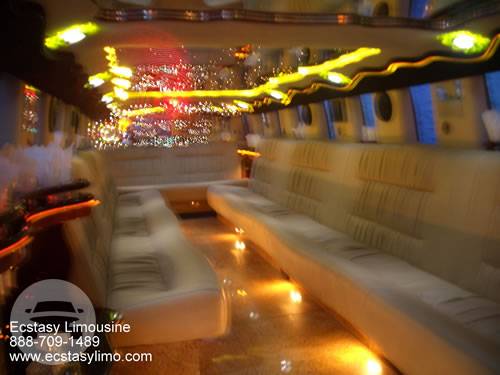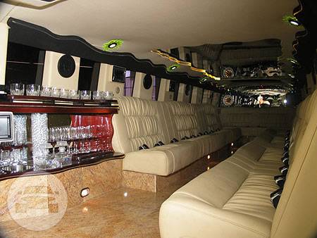 This Hummer Limo, Executive Edition Wedding limousine can accommodate 14 - 24 passengers in style and comfort. Each hummer limousine is equipped with flat Screen Monitors, AM/FM/CD, DVD Player, Play Station, fiberoptic mirrored ceiling, Lava lamps,Marble floor and a complete refreshment center. This hummer limousine is available in New York, New Jersey and Connecticut.