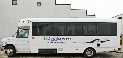 Ride in Style in our 24 passenger Executive Mini-Coach Perfect for Corporate Groups, Weddings, or any special occasion!! Ice Cold AC Leather Interior with two tables Fully loaded and ready to roll!! CD Player DVD Player with State of the Art Sound System and Flat Screen Monitors.