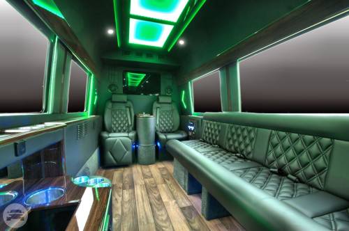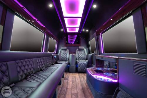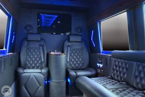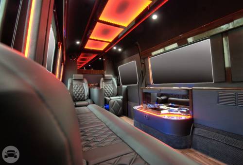 This Mercedes Sprinter has been custom built for the enjoyment of our VIP customers. This is a great alternative to a standard limousine and gives you room to walk around in total comfort. This vehicle embraces you in the lap of luxury. Has everything from Leg lifts and captains chairs to Satellite TV and WIFI. Try it out and you won’t want to ride any other way. Amenities: Captains chairs with leg lifts Bar two 32 in tvs Satellite TV WIFI DVD High End Stereo Bentley stitched seats RGB lighting Maybach ceiling Wood floors