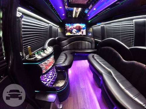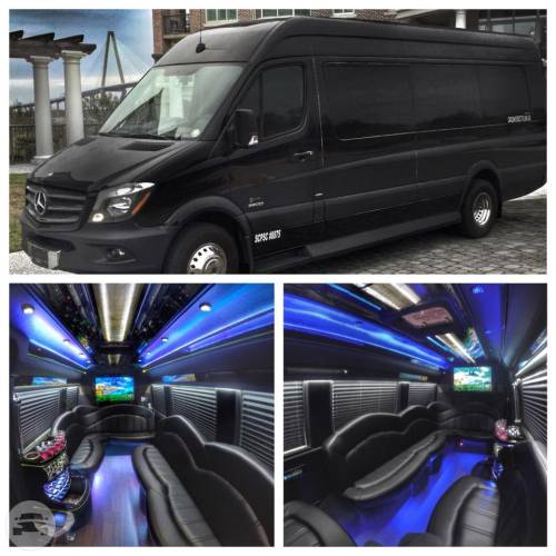 Charleston transportation service in this Mercedes Sprinter is not your typical Shuttle service this vehicle is known for. Better than any party bus in Charleston, transportation aboard the Executive Limo Bus is service you won’t forget. For a Charleston bachelorette party looking for that party bus feel with amenities of a full limousine service, this is your ride. The perfect Charleston limousine for those after roomy & elegant transportation service for a wedding day here in Charleston. Turn off the color lights, add cold bottled water, and you’ve got the perfect executive transportation service option. The Best Charleston Limo Transportation Amenities Comfortable service for up to 13-passengers Hardwood flooring Two (2) 42″ televisions Touch pad control radio with premium CD | DVD & Aux connection Four cell phone charging ports for use during transportation State of the art sound system with six speakers and multiple subwoofers Customer touch control panel for lighting, climate, and sound system Full length stainless steel mirrored ceiling with fiber optics Fiber optic bar area LED music activated lighting Full color led floor and ceiling lights Power operated privacy divider for private service Complimentary Wi-Fi by request Custom screen display options available