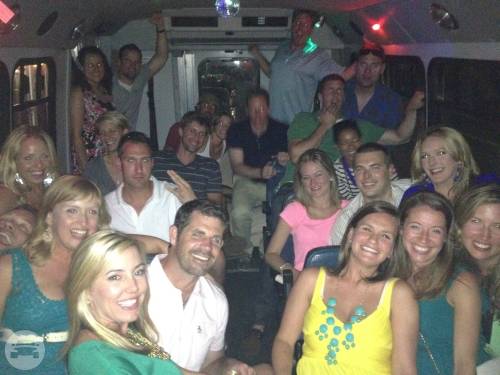 Take a good look at our amazing 30 Passenger Limo Bus! This is a great option for large groups looking to have the best experience possible in Charleston. Perfect for bar hopping, bachelor & bachelorette celebrations as well as weddings, this spacious vehicle is fitted with amenities to make your trip the best it can be. You're sure to enjoy the chrome dancing poles, ice filled bar areas, iPod capable sound system, flat screen televisions, and neon lighting!