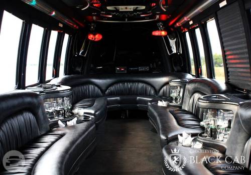 Our TOP SELLING Krystal Koach Party Bus fits 18 guests comfortable with 2 Wet Bars, Dance Lights, Leather Limo Seating, Audio Connection and Powerful Bass system will keep the party thumping all night! Contact our concierge to use our Party Bus for customized tours in Charleston-Brew Pub Happy Hours, weekend wine tastings, distillery tours, museum and historical tours, geocaching, plantation tours and beach hopping. Seating for up to 18 passengers 2 TV’s with DVD Players, stereo system with audio connect capability Strobe lights, laser lights Black leather interior, tinted windows and privacy shades Privacy divider from Driver area Black exterior Bottled water, cups and ice included, you are allowed to BYOB or let us provide a theme party with beverages to compliment