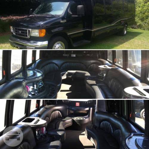 Our late model Ford Luxury Limo Buses are available for groups of all sizes and any occasion you wish. We often charter these limo buses for group airport transfers, day trips, proms, weddings and sporting events. They seat up to 15 to 18 passengers in luxurious comfort and feature CD players with MP3/ audio inputs, televisions and leather seating.