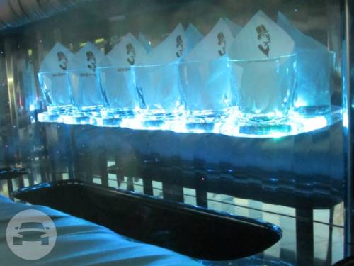 Vehicle Amenities: Solid Divider· Dome Lights· Halo Lighting· Console Lighting· Floor Lighting· Console Ice Storage Compartment· (2) Champagne Cooler· (8) Rocks Glasses· (8) Champagne Glasses· Rear Overhead Command Center· AM/FM CD/DVD MP3 & IPOD· Hands Free Intercom· (2) 12v Power Points·Rear Air Conditioning/Heating· Opera Lights· Tinted Glass Complimentary Water, Soda and Ice in every stretch Limousine. WIFI available upon request. Seating Capacity: Seats 1 to 8 Passengers Luggage Capacity: Up To 5 Suitcases