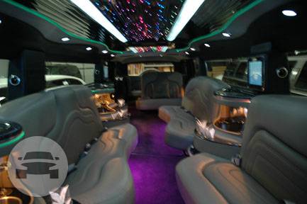 Black with black vinyl top Super Stretch 200 Inches 15 Passenger seating Amenities Fiber Optic Bar and Accent Lighting Stainless Steel Headliner with Fiber Optics Separate heating and air conditioning controls Privacy Divider Champagne & Crystal Glasses LED Cabin Lights CD & DVD Player with remotes Intercom System 15″ Flat Screen TV 2 – 10″ Flat Screen TV’s 8 speaker AM/FM Stereo with subwoofer 2 extra large bar coolers