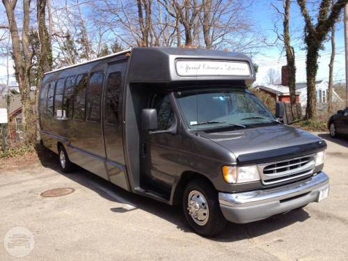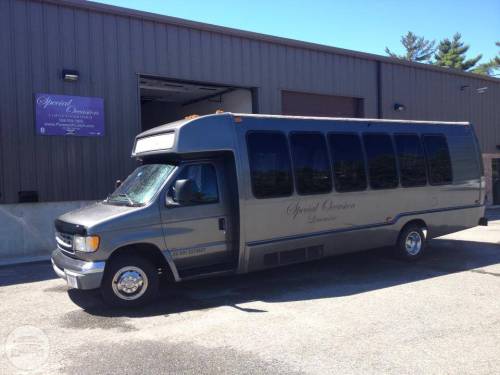 Our LimoCoach is ideal for groups up to 18 passengers. Very popular for shuttling guests of the Bride & Groom, or to take in a Patriot's Game at Gillette! Two style seating configuration. Captain chairs for 6 w/table limo lounge seating in rear Ice chest AM/FM/CD/DVD w/Ipod hookup mobile theater Two flat screen monitors Overhead storage with 6.5 ft head room Tons of rear storage