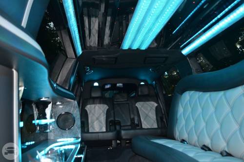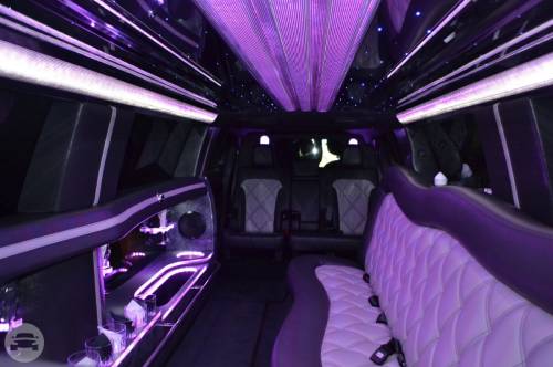 -Luxury white stretch limo with a cream/black interior. -Comfortably seats up to 16 Passengers. -Equipped with a sound system, flat screen TV, DVD player, and a side bar (alcohol not included). -Fiber optic and neon lighting, strobe lights, disco floor, and rear jet doors.