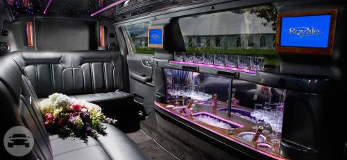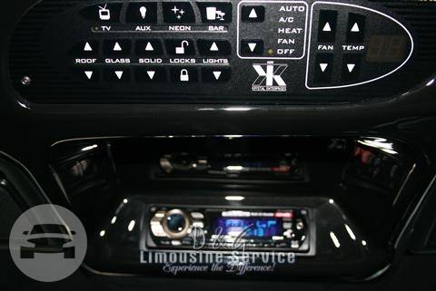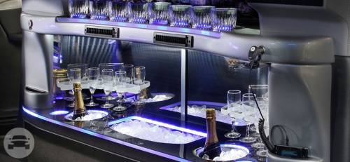 Vehicle Amenities: Solid Divider· Dome Lights· Halo Lighting· Console Lighting· Floor Lighting· Console Ice Storage Compartment· (2) Champagne Cooler· (8) Rocks Glasses· (8) Champagne Glasses· Rear Overhead Command Center· AM/FM CD/DVD MP3 & IPOD· Hands Free Intercom· (2) 12v Power Points·Rear Air Conditioning/Heating· Opera Lights· Tinted Glass Complimentary Water, Soda and Ice in every stretch Limousine. Seating Capacity: Up to 10 Passengers Luggage Capacity: Up To 5 Suitcases