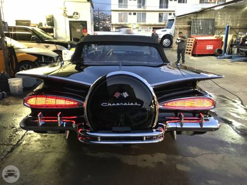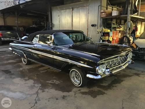 Ride in style with our convertible Chevy Impala. Travel in style & comfort with the world’s classiest convertible. Indulge in luxury for a night Enjoy our restored, classic 1959 Chevy Impala Convetible while on your way to that big event: • Birthday Parties • Bachelor Parties • High School Proms • Night on the Town • Weddings • Dinners • Corporate Events and More! Roll in style with the Chevy Impala From the slick exterior to the spotless, luxurious interior, you can't go wrong when you choose our 1959 Chevy Impala Convertible as your ride. It boasts all the latest amenities and features. Call today to book your reservation and travel in our 1959 Chevy Impala Convertible, we are available 24/7 for your convenience!