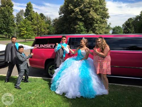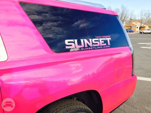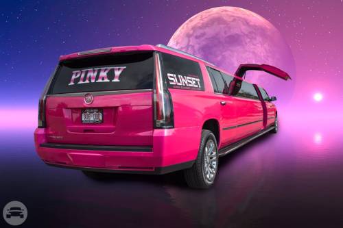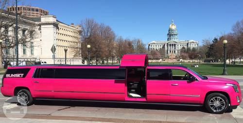We Have Denver’s One And Only Pink Limo! Show up to your event in one of the Mile High City’s hottest limousines! Not to be confused with our pink Party Bus, our Cadillac Escalade stretch pink limo is the most unique and luxurious limo in town! What Are Gullwing Doors? Great question! Gullwing doors are the greatest gift the 80s gave us. Remember the DeLorean time machine from the Back to the Future movie franchise? The door on this limo opens exactly like that. Accommodating up to 20 passengers, “pinky” comes standard with iPod integration, sub woofer and amplified sound system, lasers, HD flat screen television(s), a disco floor and a full beverage disco bar. Make your Mile High event hot pink! Perfect for bachelorette parties, birthdays and Sweet 16s. Seats up to 20 passengers. 16 passengers for the most comfortable seating. Sunset Limos does not provide iPod or smart phone cords.