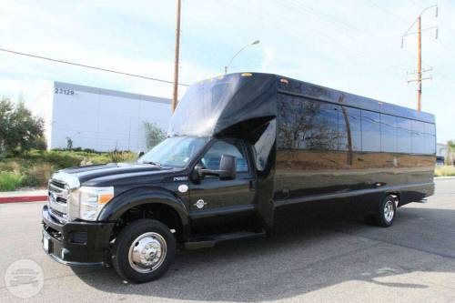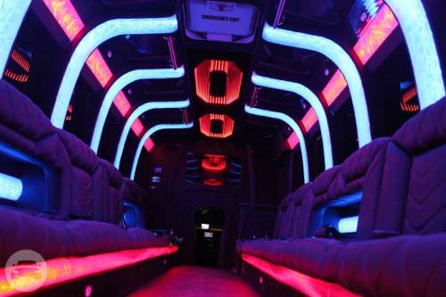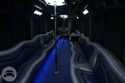 Passengers: 30 Vehicle Color: Black Dallas Limos 30 passenger black bus is ready for your next night out on the town. Featuring multiple large interior LED TV’s, laser strobe lighting and a banging entertainment system, this vehicle is ready to help your group experience a night they will never forget. Large Interior LED TV’s Multi-Color Interior LED Coach Lights Multi-Color Interior LED Medallions Laser/Strobe Interior Lighting Multi-Color LED Mood Lighting 2000 Watt Stereo Entertainment System Fully Stocked Wet Bar Leather Perimeter Bench Seating Ceiling Mounted Assist Handrails Blackout Window Shades