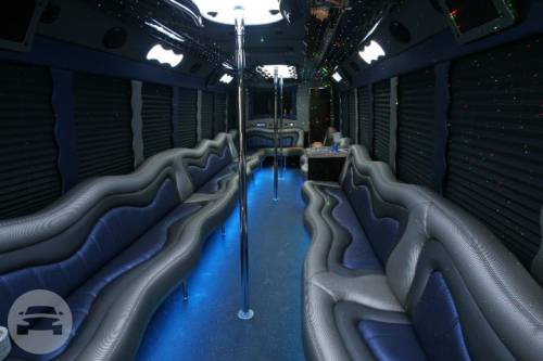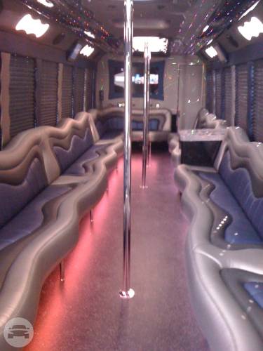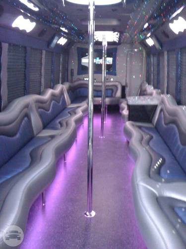 Silver & Metallic Blue Interior; 3 Dance Poles; Seatbelts; Full Fiber Optic Ceiling; Wood Dance Floors; 6 Flat Screen TV's; iPod Compatible; Xbox Hook Up; Playstation Hook Up; Restroom; 2 Ice Coolers.