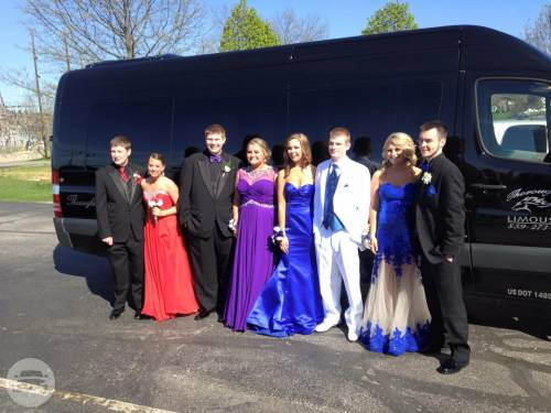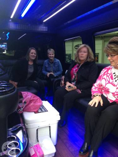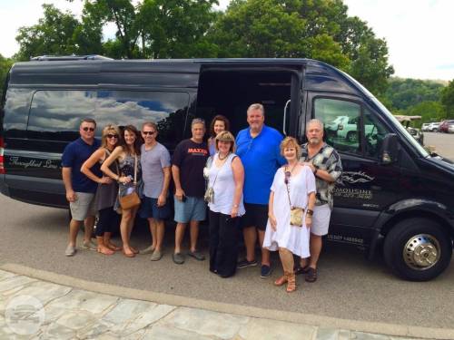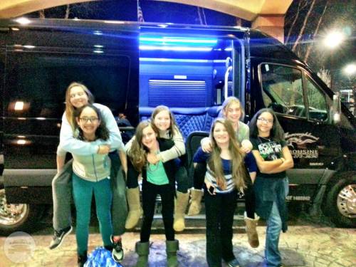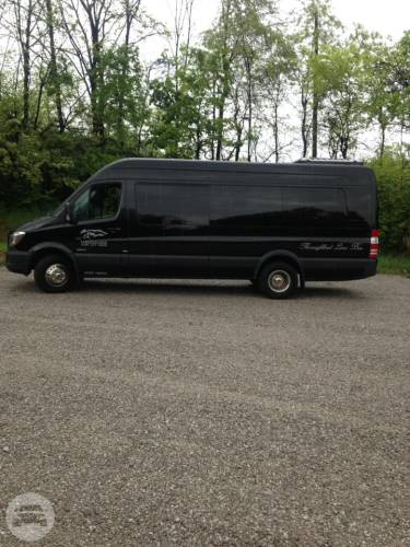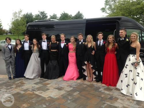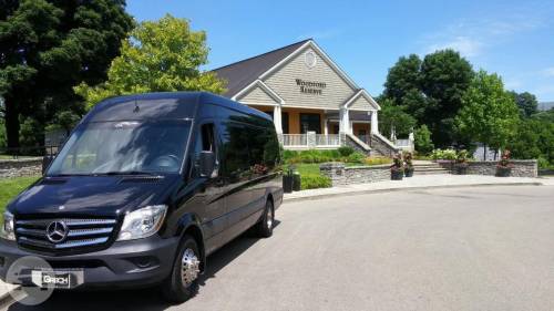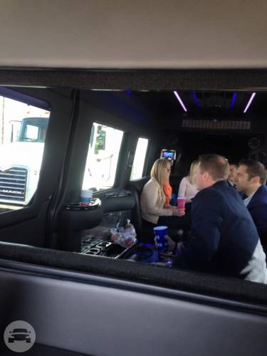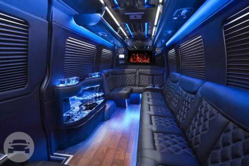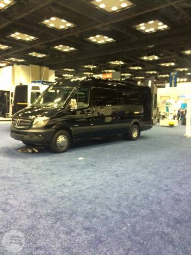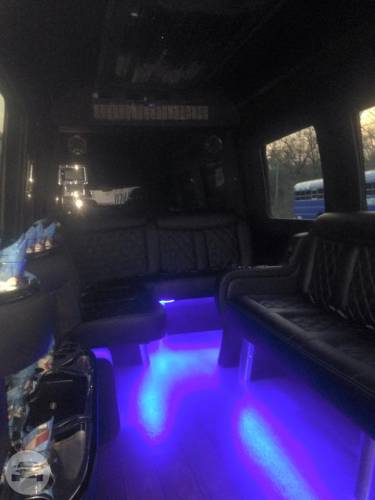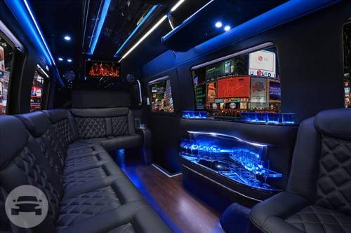 Seating up to 14 passengers comfortably Premium audio/visual systems w/ big screen TV’s, DVD, Bluetooth and ipod Electrical outlets, USB power points and HDMI data plug-ins Black-on-black perimeter leather seating with wood grain floors Large viewing windows with adjustable shades for privacy Luggage compartment rear of vehicle and under seats