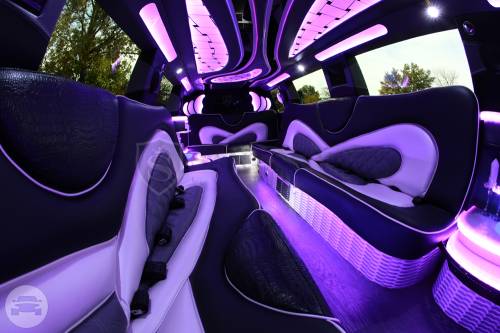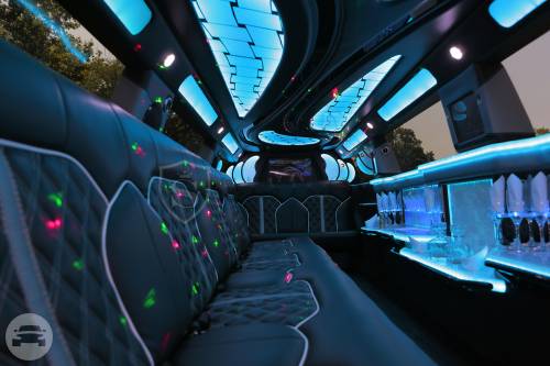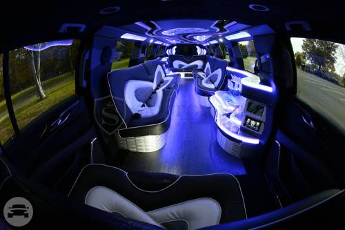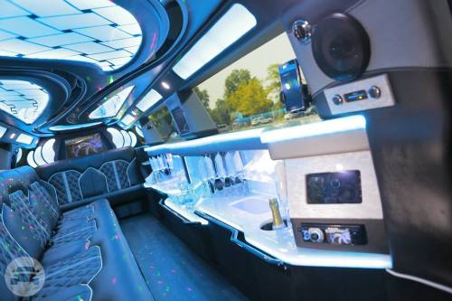The Cadillac Escalade Super Stretch Limousine is nothing if not a class act. Leather seats, tinted windows, and with more headroom than even the Hummer, this limousine can accommodate up to 18 passengers comfortably. The sound system at your disposal can’t be beat, with multiple subwoofers and amps to surround you with the sound you love as you cruise through the city for a night of fun. Complimentary Water, soda and Ice in every stretch Limousine. Seating capacity: Up to 18 Passengers Luggage Capacity: Up to 2 Luggage
