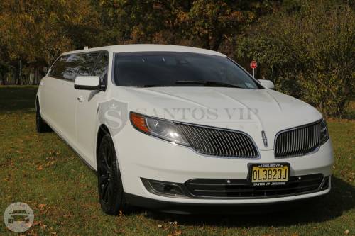 10 Passenger Capacity Glossy White with Custom Black Rims High Powered Pioneer® Sound System w/Sub-Woofers Auxiliary Media Inputs for iPhone & Android Sleek single window design 3 LCD TV’s with a Large LCD TV in the Divider Touch Screen Controls Two Multi-Tiered Bars w/White Bar Tops and LED Lighting Custom two-toned leather seating LED Disco Ceiling Wood Floor LED Lighting/Strobe Lights and Multi-Point Laser Extra Large Beverage Coolers & Ice Chests Undercarriage LED Lights 10 Passenger Lincoln MKS Super Stretch Limousine The Lincoln MKS super stretch limousines are brand new limousines that we added this year. Santos VIP is proud to announce the we were the first and only limousine service in NJ to offer the new Lincoln MKS in a 10 passenger limousine. So if you are looking for one of kind…then look no further! The MKS has contemporary styling and is a beautiful limousine for those who want something modern and classy but do not want to venture into our exotic limousine category. With it’s stunning glossy white exterior, single window design and ultra luxurious interior, you will definatley make a grand entrance when you arrive at your destination. Whether for your NJ Wedding or if you are planning a NJ Prom, a NYC Bachelor party, New Jersey Bachelorette party, or simply just having a night out on the town we are sure you and your guests will absolutely love the Lincoln MKS super stretch limousine.