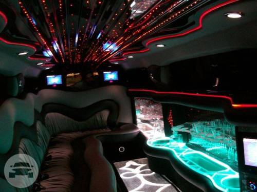 Holds up to: 6 - 10 Passengers Colors: Black exterior with Black interior, White Exterior Includes: TV, CD/DVD Player, Moon Roof, Bar, Leather Seats
