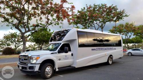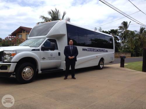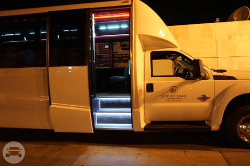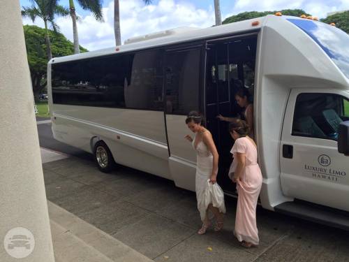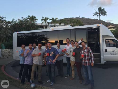 Reserve Hawaii’s only Executive Limo Bus today! Be the center of attention in our 2015 Ford F550 25-Passenger Executive Limo Bus. Make the most out of your evening. When you have a special occasion that you want to celebrate with up to 25 of your friends or co-workers, don’t settle for anything less than the best. Let Luxury Limo of Hawaii take your group around the island in style, we’ll pick you up and drop you off anywhere on Oahu so you don’t need to worry about anything but having a great time! Kick back and relax with a thoroughly-screened and qualified driver behind the wheel. Enjoy all of the state-of-the-art amenities while you cruise, including a bar, unique lighting, and lounge-style seating. The best news? We are available 24 hours a day to accommodate your schedule. Get the Executive Limo Bus for any event: • VIP Limo Service • Corporate Events • Birthday Parties • Anniversaries • Bachelor Parties • Proms • Weddings • Special Events and More!
