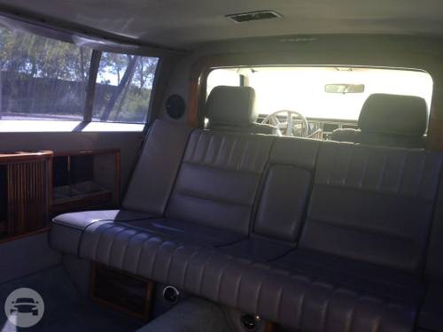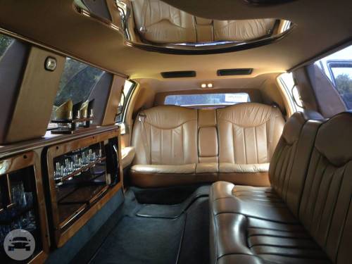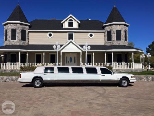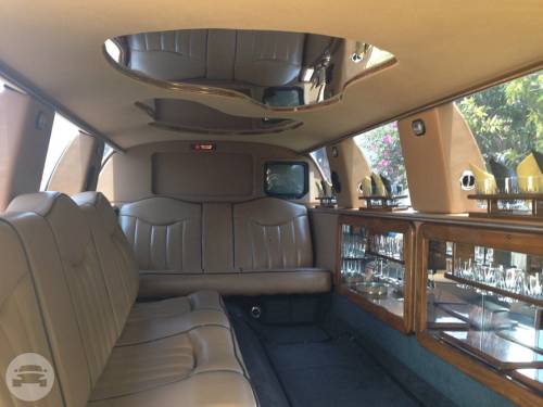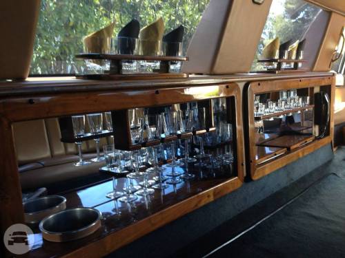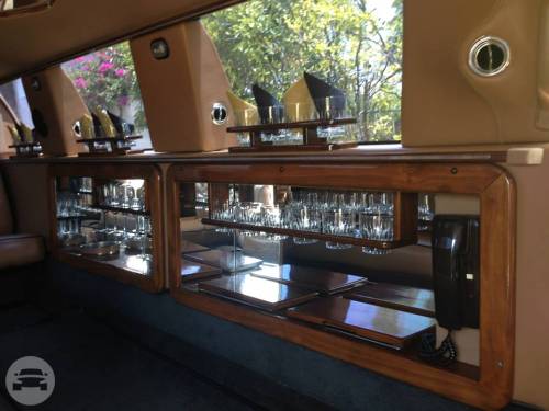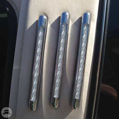 10 passenger (eight passengers for extreme comfort) Built by Westwind Coachworks this white on white limousine is especially perfect for weddings and all your special events. Relax in sophisticated comfort of luxurious tan leather and wood accents. Features: Solid divider Intercom system Automatic bar system (extra charge)* Flat screen TV Upgraded audio system w/sub and bass control DVD player Fiber optic color changing mood lighting Mirrored fiber optic/lighted ceiling Multiple ice buckets Champagne bucket 12v charging port Crystal champagne and rocks glasses WiFi**