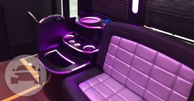 28 Passenger Limo Bus Features: High Gloss White exterior Wood Floors Amazing Sound System Cd/Dvd/ Ipod Hook up LED TVs Ostrich Diamond cut leather seating 2 Large Coolers (ice provided) Custom Privacy Window Shades Multi Color Led Lighting Luggage area in rear Spinning Dance pole (optional) Lighting Controller