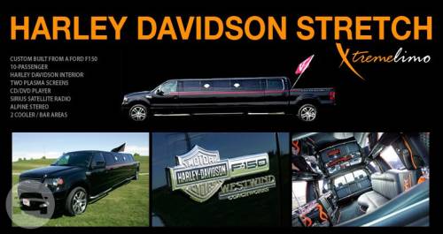 Custom made, one-of-a-kind limo built from a Ford F150 Comfortably Seats up to 10 People Black Exterior Harley Davidson Interior CD Player Alpine Stereo 2 Cooler/Bar Areas