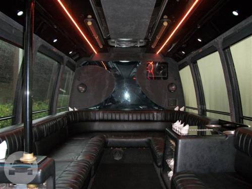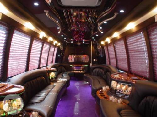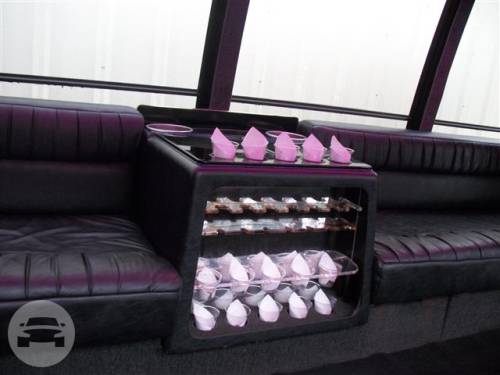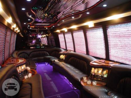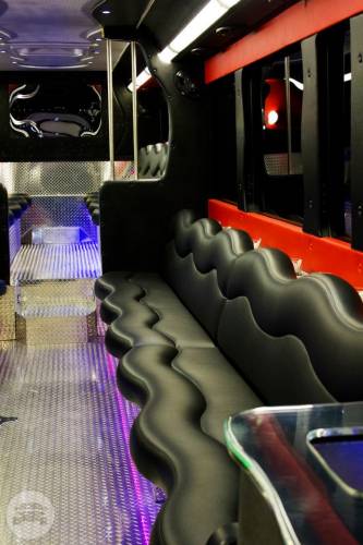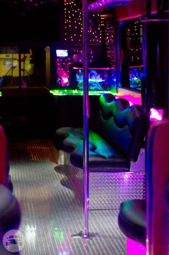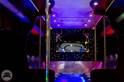 The twenty five passenger party bus has everything you need to make your night special. This limo bus has an upgraded sound system, a large flat panel TV, fiber optic lighting and mood control, and several bars with complimentary refreshments.