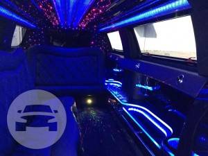One of the most popular rides in our fleet is this very spacious stretch SUV that can hold 14 passengers quite comfortably. Twinkling fiber optics and color-changing bar lights make this muscular vehicle something to see. There are two small monitors plus a larger flat panel display, and a CD/DVD player with MP3 player connection. This vehicle is great for parties of 10 to 15.