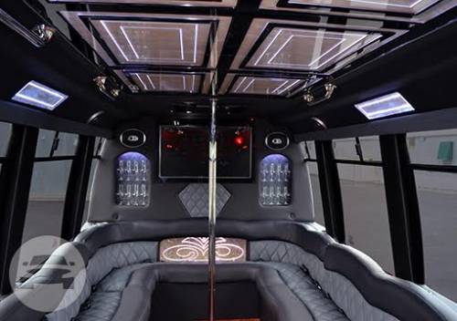 This rockin' vehicle answers to either name. This freshly minted party on wheels now holds up to 18 and boasts two flat panel TVs and a karaoke system. For an unforgettable wine tour, wedding, bachelor party, or night of partying anywhere throughout the Bay Area, our reliable, spacious and smooth-riding Ford Federal 18-passenger party bus is your ideal solution. Jump on this bus for microbrewery tours, corporate events, birthday parties, sightseeing trips, too. The mightily upgraded sound system blasts your CDs, DVDs and MP3 players. Champagne is always included: free!