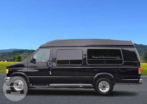 This converted executive van, with raised roof and upgraded sound system, once had forward-facing, individual seating. It now has limousine seating, and if you read our online reviews, you will learn how much people love it! With brand-new perimeter seating, you and your group of 10 to 11 can comfortably talk and socialize while enjoying your favorite music on your MP3 player. Our limo van is like a smaller party bus, with a more affordable price tag. We include two bottles of Sonoma County champagne with this vehicle.